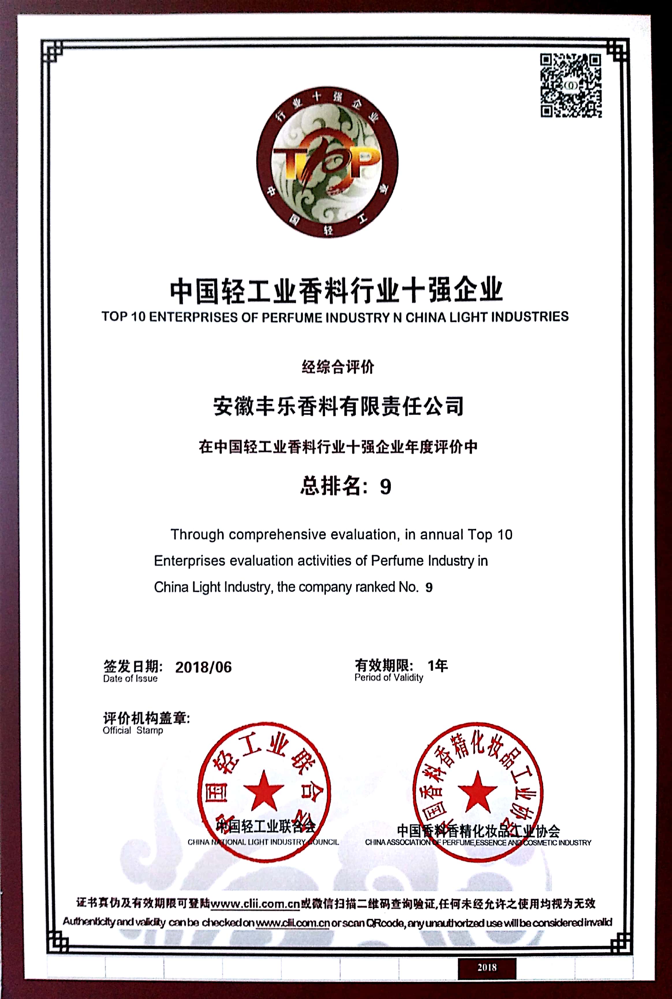 2018年-中國(guó)香料行業(yè)十強(qiáng)企業(yè)
